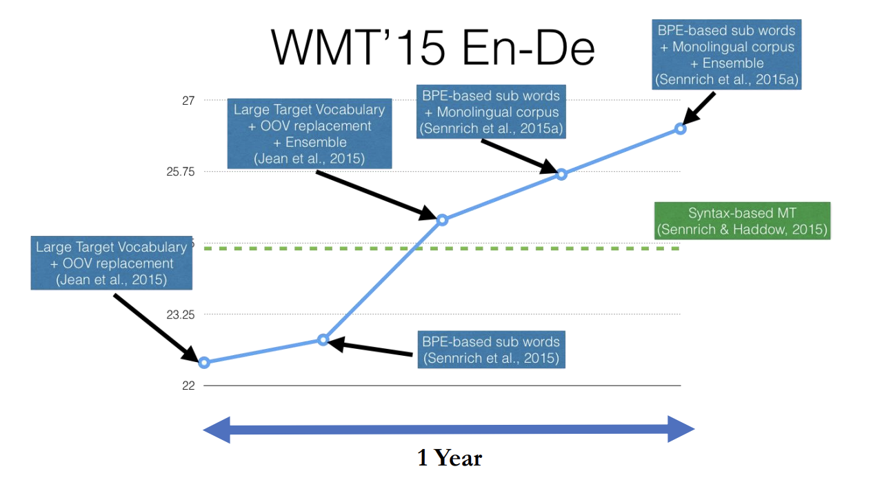 (WMT'15 En-De 장표 보면서 설명 <lecture4 - machine translation.pdf>의 27쪽)