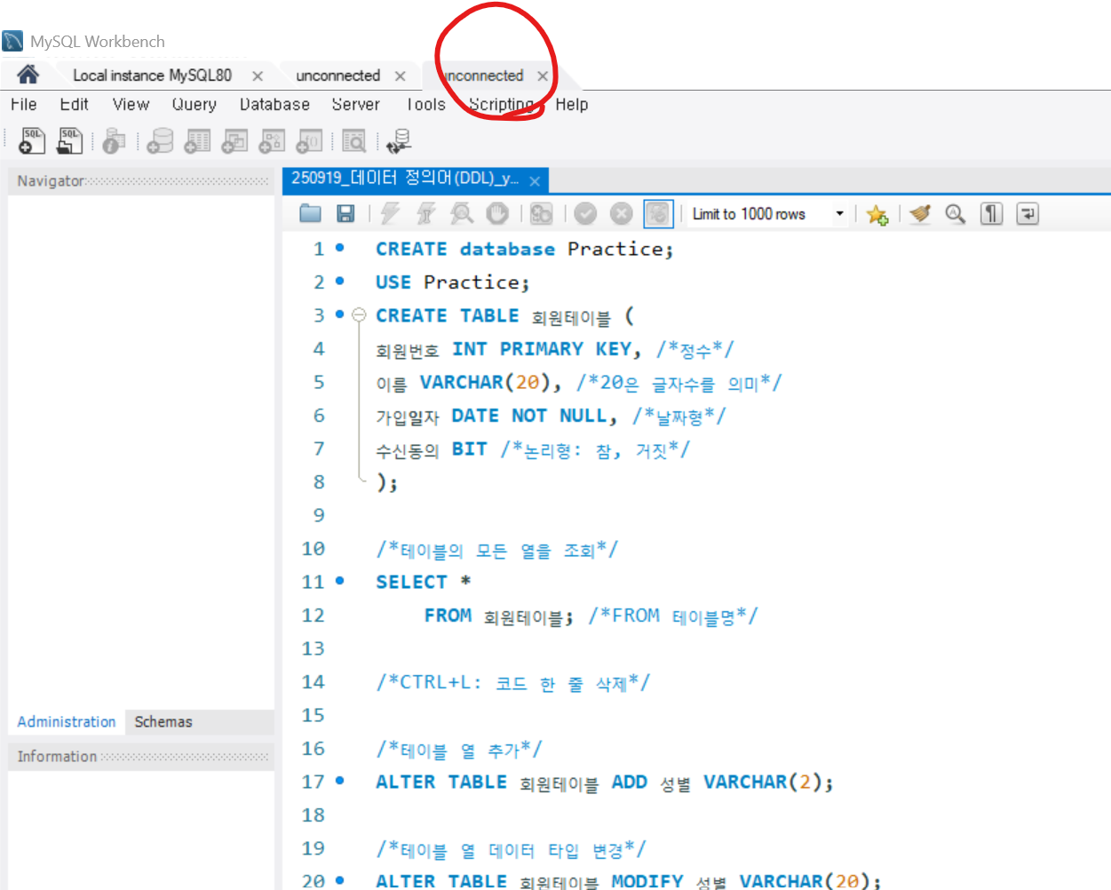 연연_bd 2025.09.23 신고 안녕하세요~ sQL 강의 듣고 실습할 때마다 쿼리쓰고 저장하는데꼭 다시 열때는 unconnected라고 뜨더라구요ㅠㅠㅠ 이게 왜그럴까요...?? 연관 강의 [3. Workbench 살펴보기] Workbench 살펴보기 공유하기 URL복사 밴드 페이스북 트위터 추천 SQL 파일열때, unconnected - 연연_bd SQL 파일열때, unconnected - 연연_bd 이전 글이 없습니다. SUB QUERY 대신 JOIN을 사용한 다양한 해결방법 (16:18 ~ ) 목록 댓글 comment 최신순 등록순 추천순 나의 글만 보기 OFF 페이지 이동 First Prev Next Last